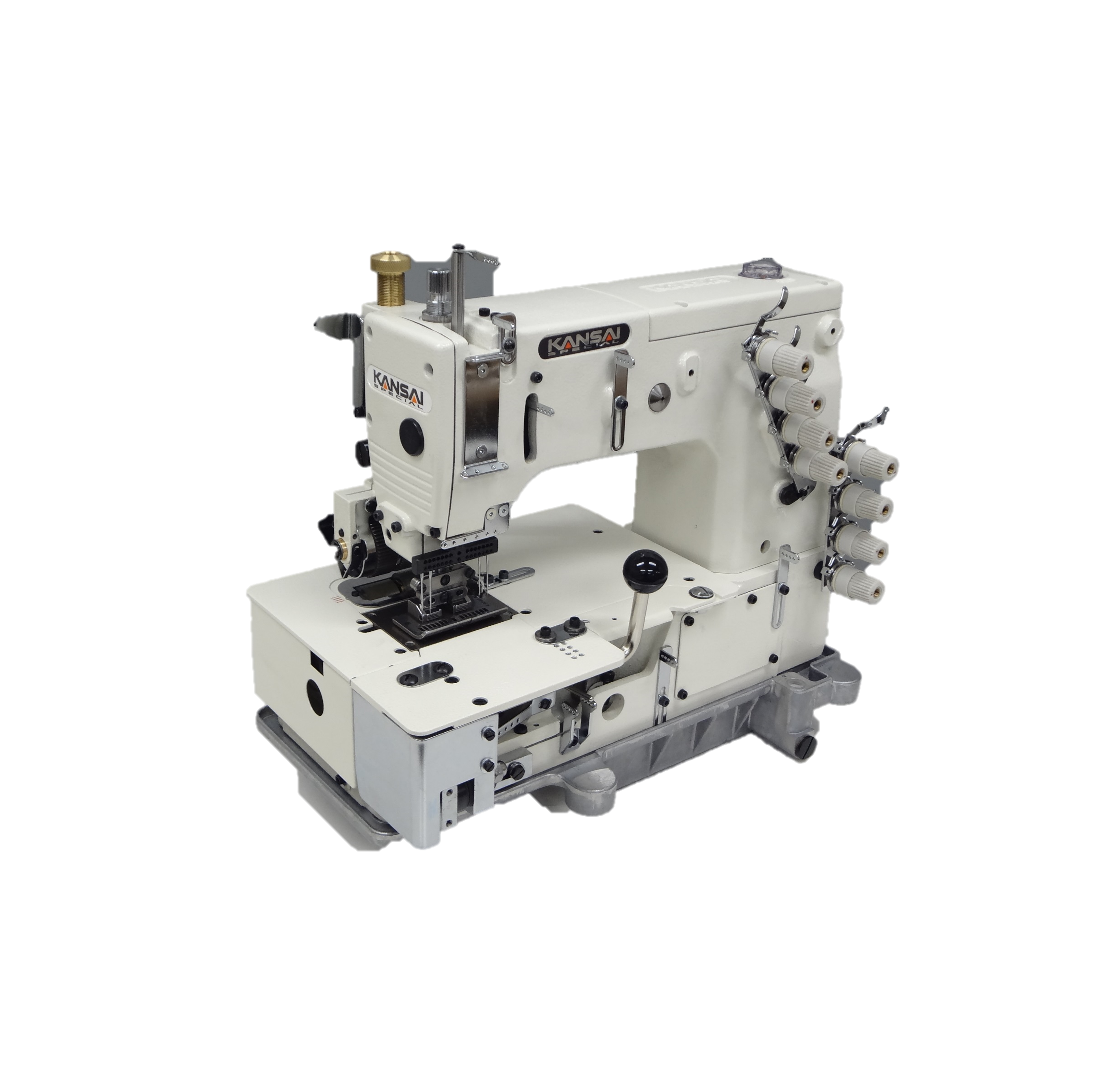 Flat-Bed double chain stitch machine for CURVED waist banding with preinstalled Japan made 15 needle