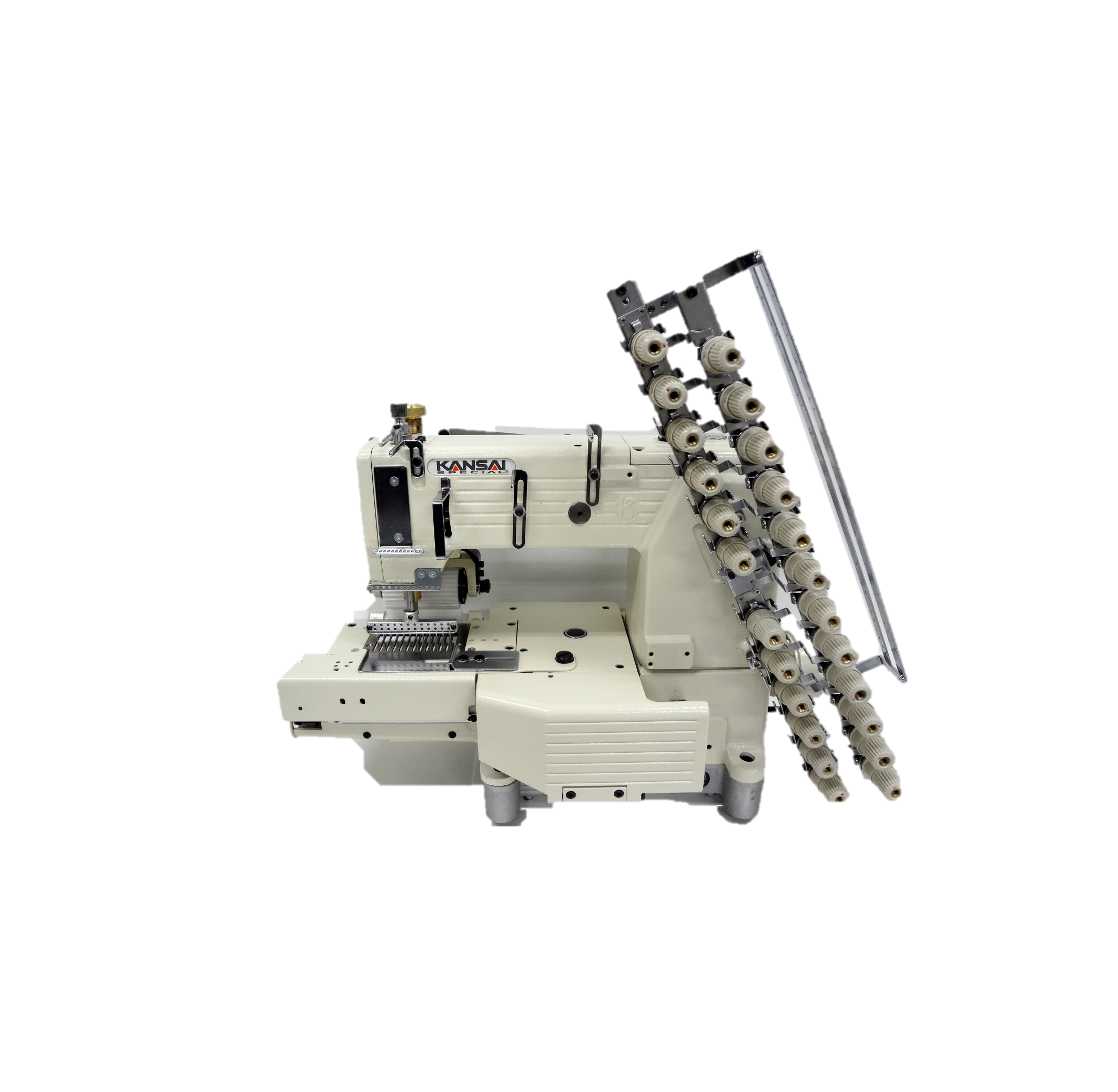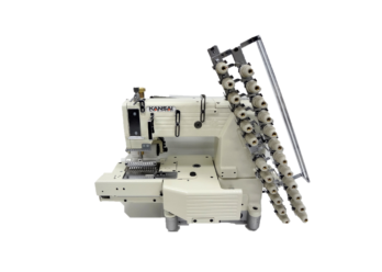 FX series is a versatile multi-needle, cylinder bed, double chain stitch machine with vertical looper movement mechanism. This machine is specialized in attaching pre-closed elastic bands to sweat pants, pajamas, trunks and similar garments. Major features of this series are the wide range of available gauge size (4~21 needle), cylinder bed (420mm in circumference), elastic expanding device(RT-1) and rear puller mechanism. Pneumatic thread cutter(UTC) system increases productivity by trimming threads accurately and leaving less thread. This can save threads and labor cost. [Option] FL: Air foot lifter RT-1: Elastic expander FX series gauge information